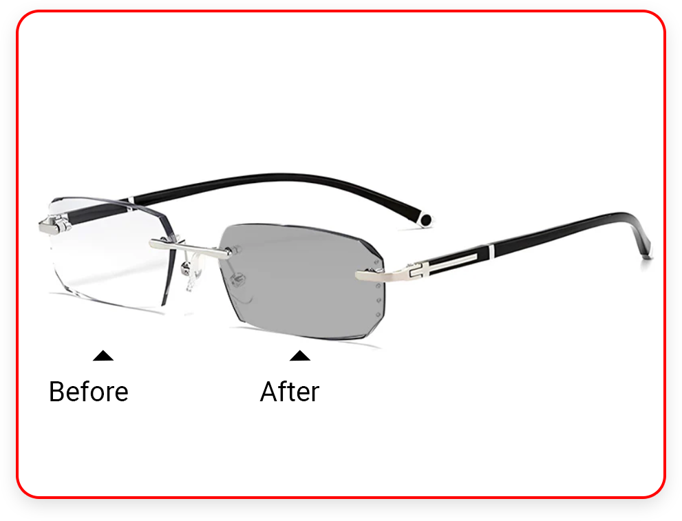 Even color transition, The lenses change color basedon UV light intensity, offering high light transmissionand clear vision.Suitable for both indoor and outdooruse.